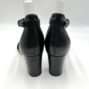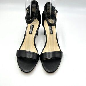 Nine West Womens Pruce Black Leather Block Heel Open Toe Sandals Heels Shoes 6.5