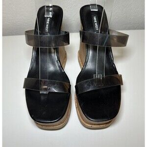 Nine West Women's Rapps High Platform Wedge Sandal Smoke Black SIZE 9