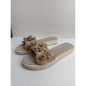 Nine West Womens Relly Open Toe Casual Slide Sandals Beige Size 9 NWB
