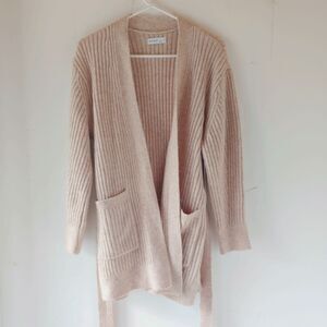 Nine West Women's Ribbed Belted Cozy Cardigan Sweater Cream Size S