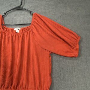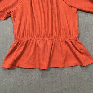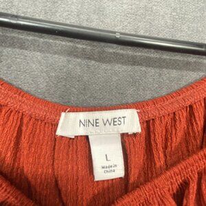 Nine West Womens Rust Peplum Red Blouse Large Polyester & Spandex