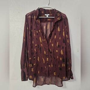 Nine West Womens Sheer Maroon Long Sleeve Button Up Blouse!
