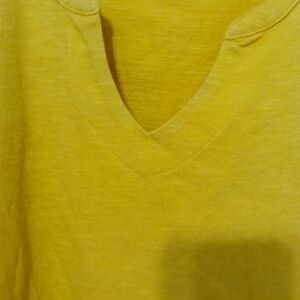 Nine West Women's Ruffled Sleeves Pullover V Neck Deep Yellow Blouse. Supports More Sustainable Cotton Farming