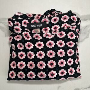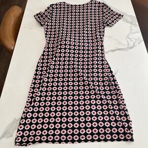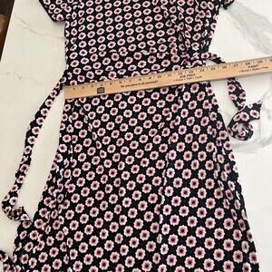 Nine West Women’s Short Sleeve Tie Waist Dress Stretch Size 10 Black Pink Floral