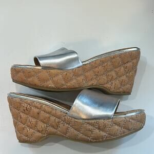 Nine West Women's Silver & Brown Clog Mule Slides Sandals Size 9