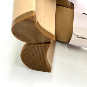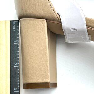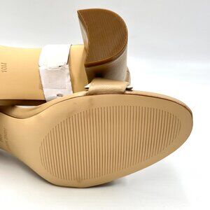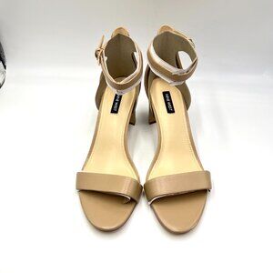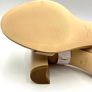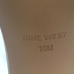 Nine West Womens Size 10 10M Pruce Nude Beige Leather Block Heels Sandals Shoes