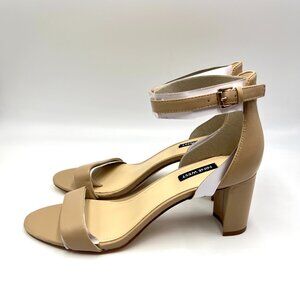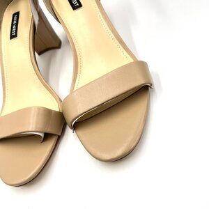 Nine West women's Pruce beige leather open toe heeled sandals.