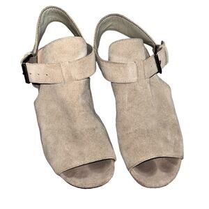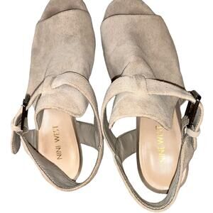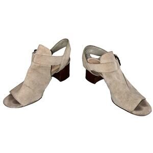 Nine West Women's Size 7.5M Ganci Tan Leather Open Toe Block Heel Ankle Booties