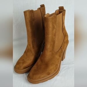 Nine West Womens Size 8 Chelsea Heel Boots Natural Brown Suede Boots New Fashion