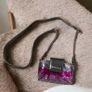Nine West Women’s Small 6”x3”x2” Pink Sequined Evening Crossbody Bag Mini.
