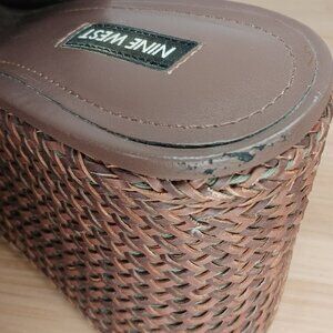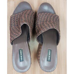 Nine West Women's Size 8.5 M Everie Woven High Platform Wedge Sandals Dark Brown