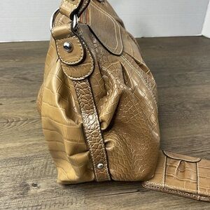 Nine West Women’s Tan Camel Shoulder Bag with Card Holder, Vegan. In great used conditon. See pictures for measurements and condition.