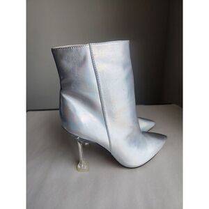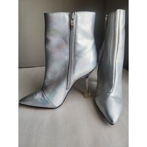 Nine West Women's Tonight3 Leather Ankle Boot in Iridescent Silver Size US 7
