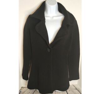 Nine West Women's V Neck Single Button Black Wool Blend Cardigan Collared M