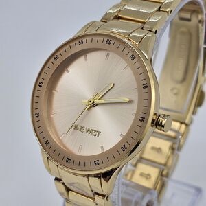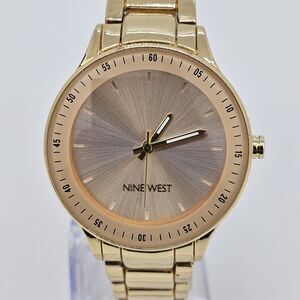 Nine West Women's Watch 35MM Gold Pink Dial Gold Bracelet Band 6.5" New Battery