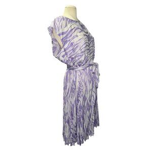 Nine West Womens XL Purple & White Zebra Print Pleated Midi Dress With Waist Tie