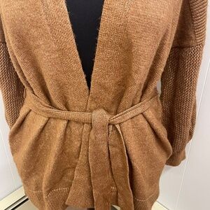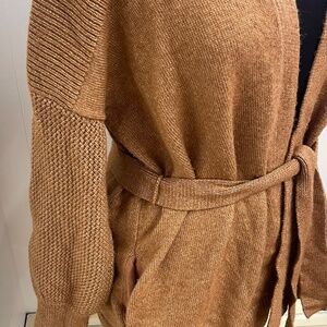 Nine West Women’s XXL Brown Belted Open Front Knit Cardigan Sweater Long Sleeve