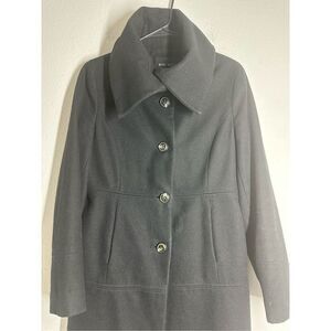 Nine West Women’s Wool Blend Black Coat Asymmetrical Collar Buttoned Lined Sz 10