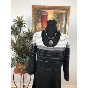 Nine West XL Black And Off-white Striped Sweater Dress 3/4 Sleeve Pullover Artsy