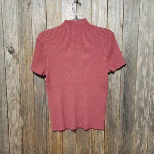 Nine West XL Women's Sweater Mock Neck Short Sleeve Rosy Pink Mauve Stretch