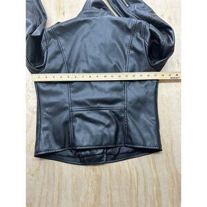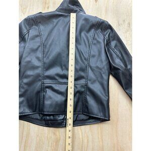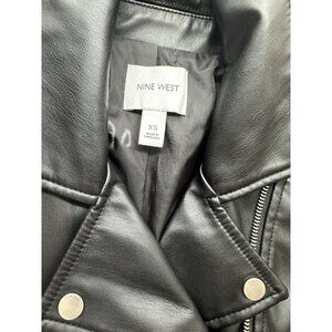 Nine West XS Faux Leather Motorcycle Jacket Grunge Fairy Zips Buttons Silver