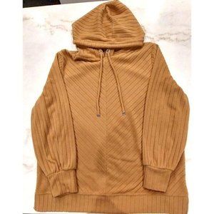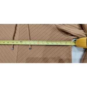 Nine West XXL Tunic Top Elson Tan Fleece Hoodie Striped Pullover Long Sleeve