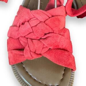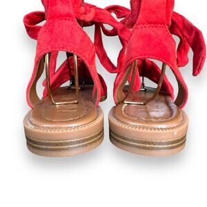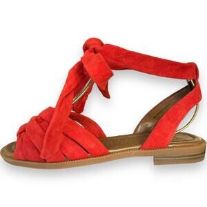 Nine West Xameera Red Suede Ankle Tie Flat Braided Toe Sandals Size 8 NEW NO BOX