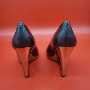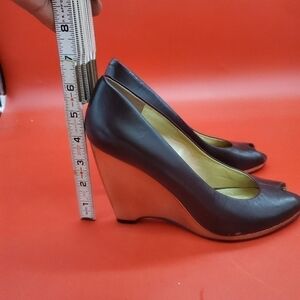 Nine West Yamaris Black Wedge Peep Toe Pump 7M Shoes