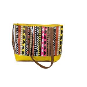 Nine West Yellow Tote Bag With Geometric Striped Pattern Faux Leather Colorful