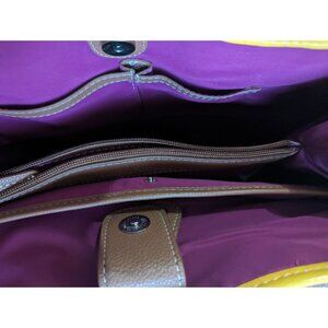 Nine West Yellow Tote Bag With Geometric Striped Pattern Faux Leather Colorful