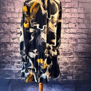 Nine West Yellow and Black Ruched Mock Neck Dress