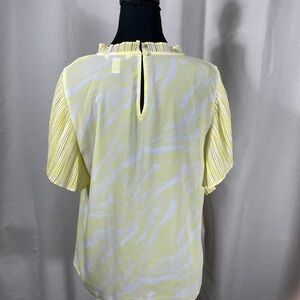 This Nine West blouse combines the vibrant hues of yellow and white, offering a sophisticated look for any occasion. Crafted with attention to detail, it features a flattering silhouette that enhances your style effortlessly. Perfect for both casual and formal settings, this blouse is a versatile addition to your wardrobe.