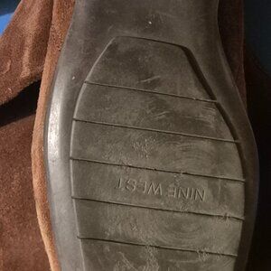 Worn but not torn Nine West Zip Up Boots for women with a zip up from heel to top. Color in good condition. A little faded, but color is still present. Some wear inside the leather, but it's not major.