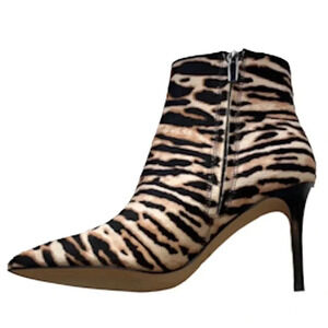 Nine West animal print heeled booties Faux fur Women’s size 5 Pointed toe