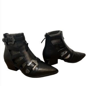 Nine West ankle Boots leather black NWCarrillo shoe zip closure point boot Sz 8M