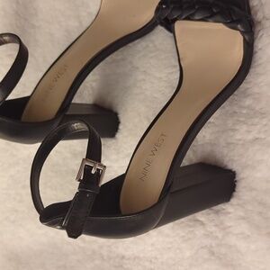 nine West block heel with ankle strap and braided strap