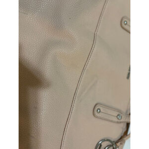 Measuring 15 inches in width and 9 inches in height, this large bag is perfect for running errands, brunch, etc. The exterior is a beautiful shade of Pink Blush, while the hardware is silver. The bag has a rectangular shape and features no outside pockets. It is a great bag for women who want to look stylish while also being able to carry all of their essentials.