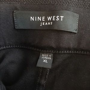 Black thick jersey like material legging styled pants. I usually wear a 16 pant. They are too big in the waist since I've lost weight. Can be worn for office or casual in all temperatures and seasons.