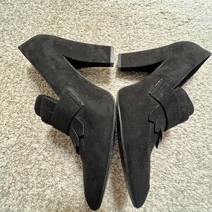 Preowned in great condition, man made material, looks like suede, not leather. Loafer style heels.