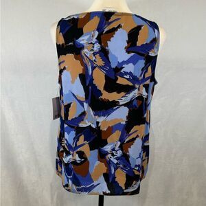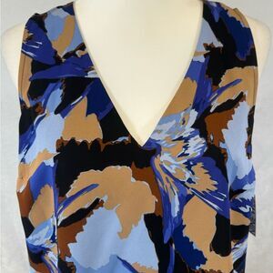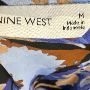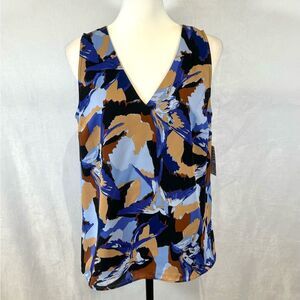 Nine West bold blues tan and black abstract print vneck top size medium NWT