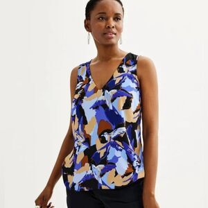 Beautiful coloring throughout this top. Sleeveless with vneck.