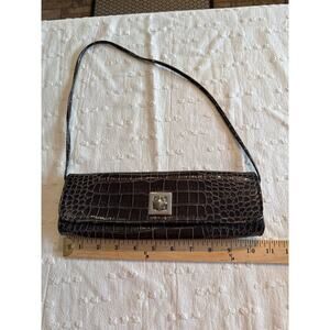 Item: Dark brown crocodile-embossed clutch purse with shoulder strap