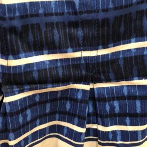 Black, blue and white stripes. Dress has full skirt with pockets!