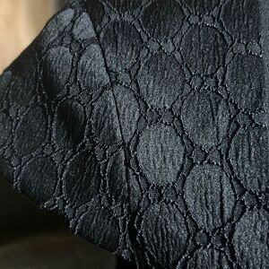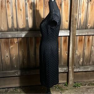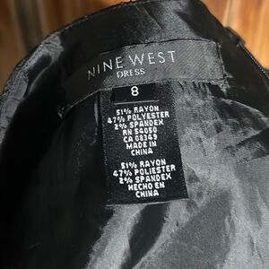 Nine West black dress has cap sleeves with a back zipper, textured in a geometric print, lined