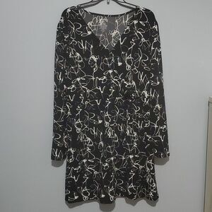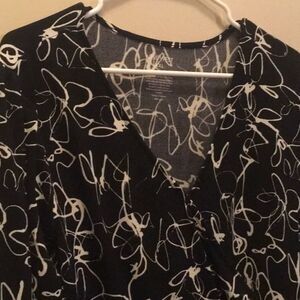 Nine West dress women's size xxl white black background wrap look squigg…