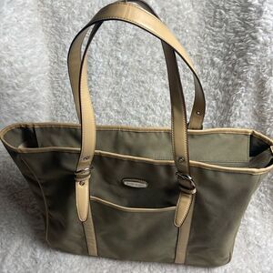Nine West extra large tote bag Olive green fabric beige faux leather trims &straps silver tone hardwares front pocket,top zipper the inside lining has a side zipper a small side pocket.Pre owned in good used condition small spots on the inner lining no tear see all pictures any questions please message.