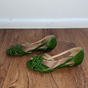 Lime green heeled flats from Nine West Weave pattern with open toe