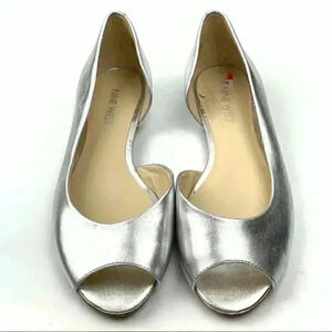 Nine West womens flats size 6 Bachloret silver metallic leather Dorsay peep toe