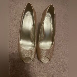 Nine West gold sparkly peep toe heels size 8.5