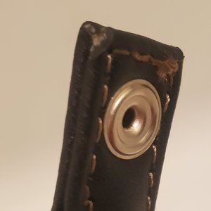 -I am not certain about the strap material, but it seems like leather or leather composite to me